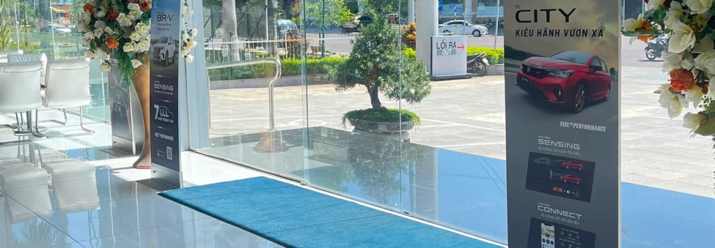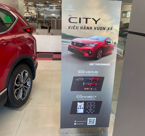Supplying POSM systems for nationwide Honda Vietnam auto showrooms, consisting of: standees, wall illustrations, tablecloths, coasters, umbrella, employee shirts…