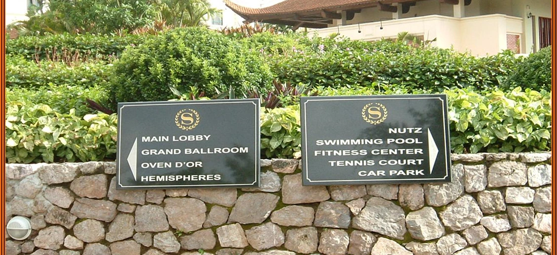 AIT opted for the most high-quality materials at the time of construction, namely gold mirror-finish stainless steel, natural stone materials and gypsum. We were entrusted with the provision of all hotel signage systems, including hotel/in-house restaurant nameplates, instruction signage, room number plates, employee zone signage. These items all prove to have high durability, having been in use at Sheraton Hanoi up till currently and need very few instances of maintenance/repairs in the last 20 years.